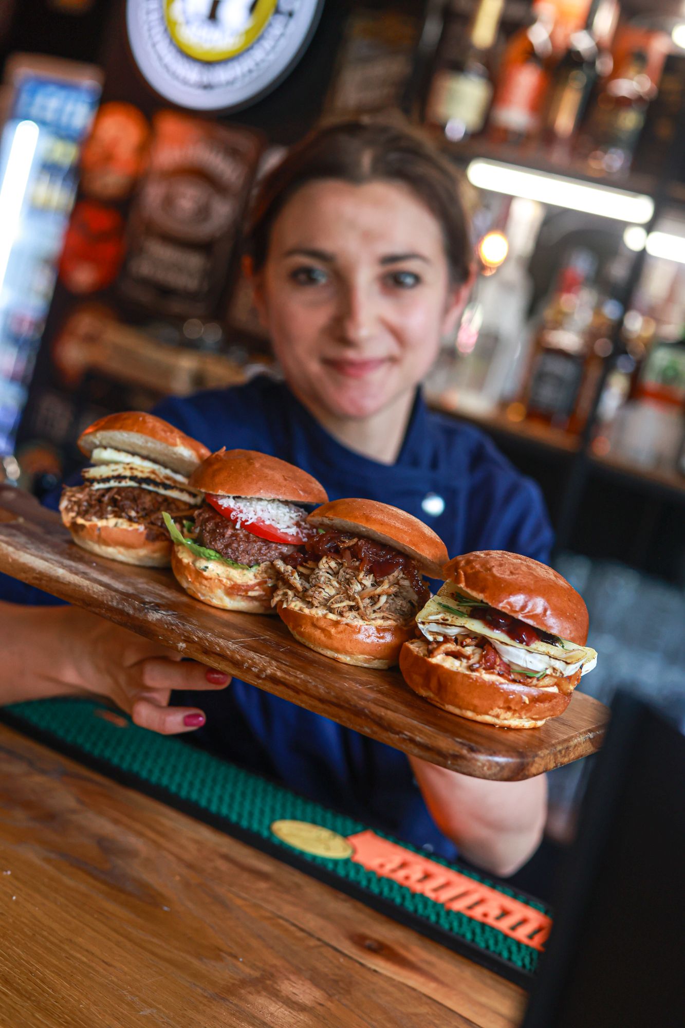 Mini burger z wołowiną, serem, sałatą, ogórkiem oraz sosem majonezowo-musztardowym (6 szt.)