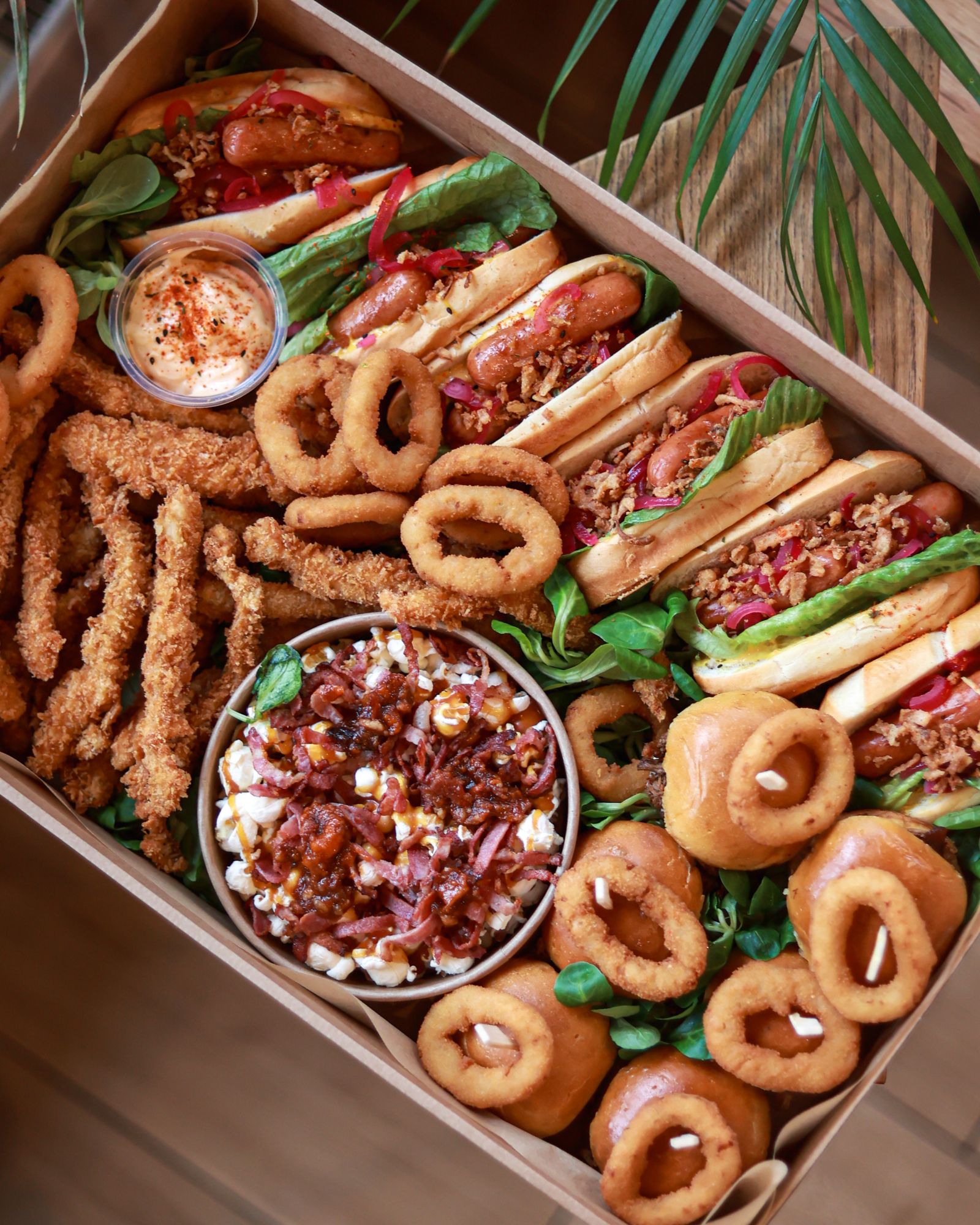 Mini hot dogi z kiełbaskami, piklami i cebulą prażoną (6 szt.)